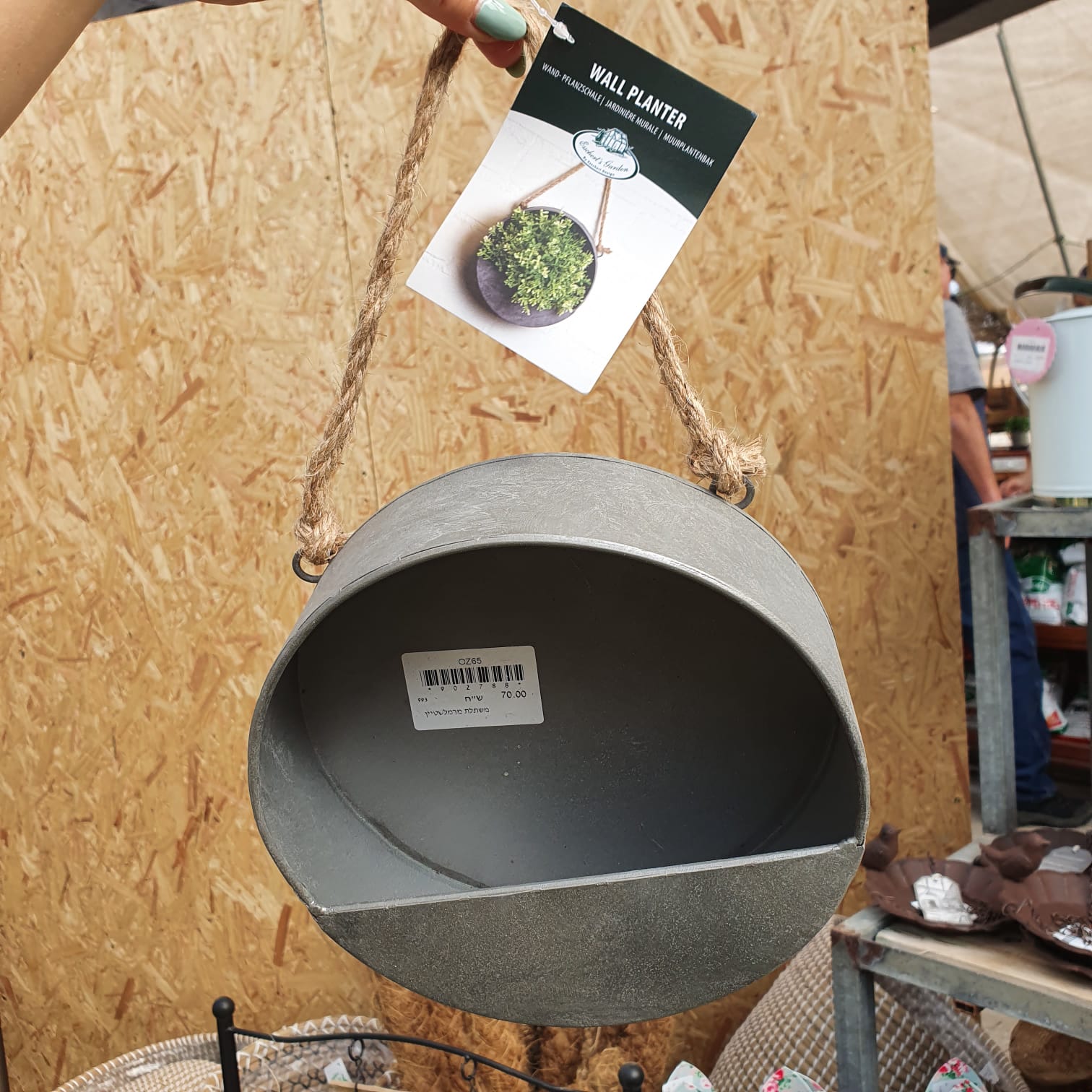 כלי מתכת עגול שהחלק התחתון שלו סגור ומאפשר שתילה של צמחים קטנים
