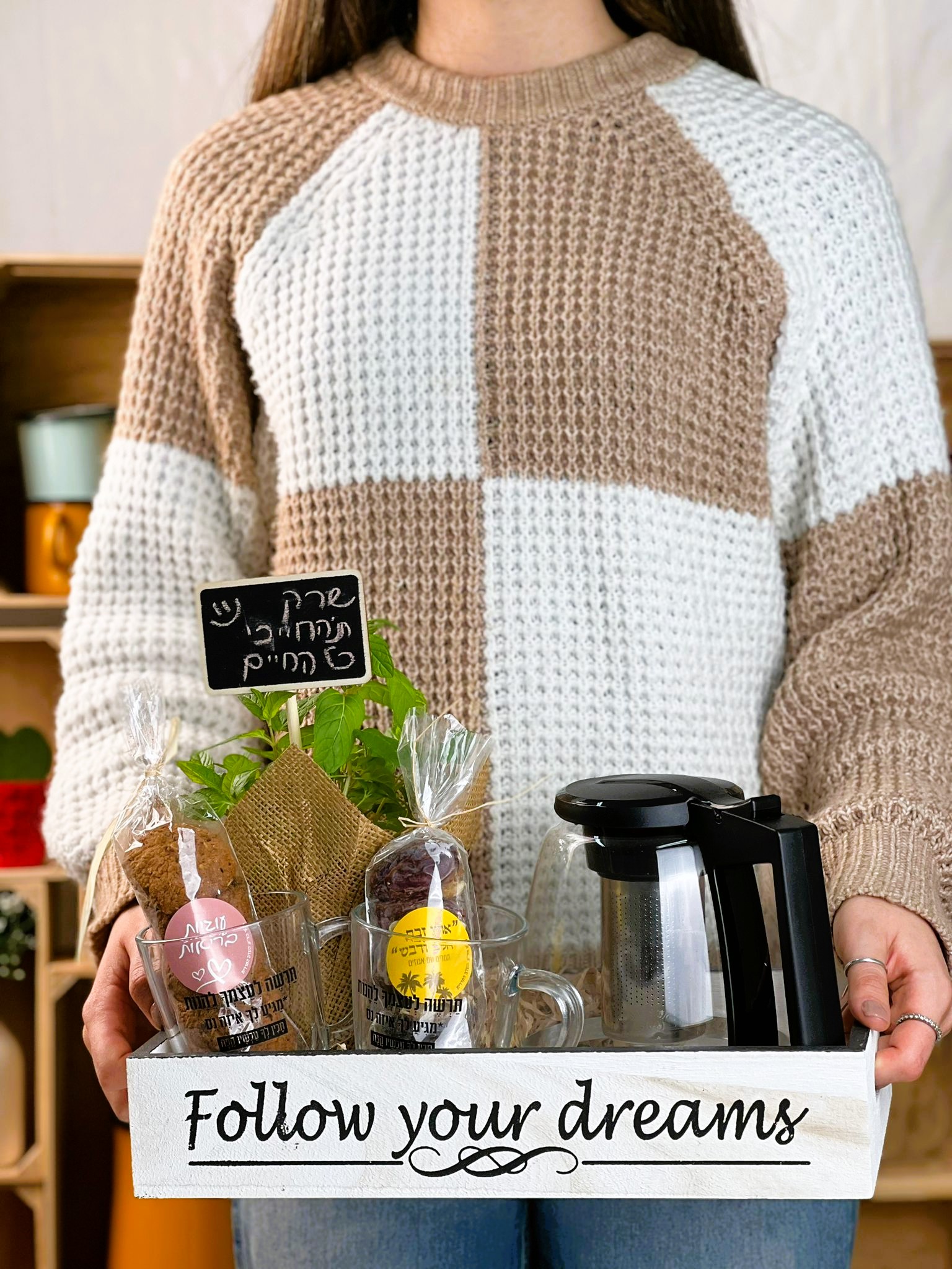 המארז מגיע בתוך מגש עץ מדליק וכולל: