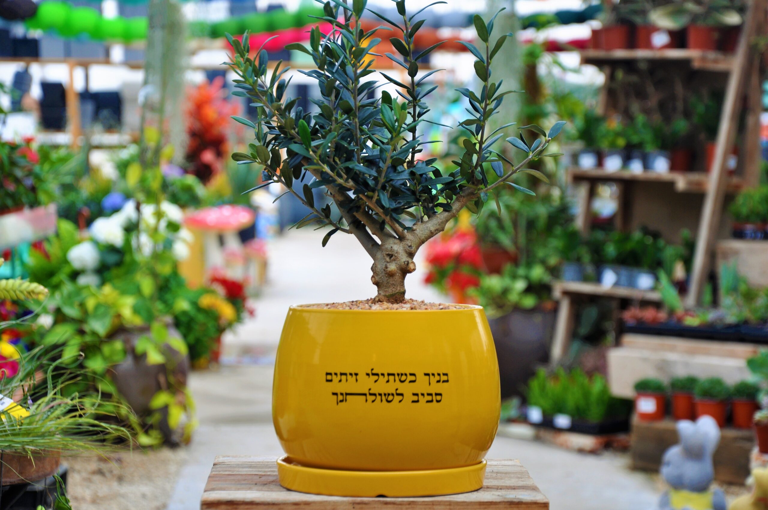 עציץ זית ננסי שתול בכלי קרמיקה עם תחתית